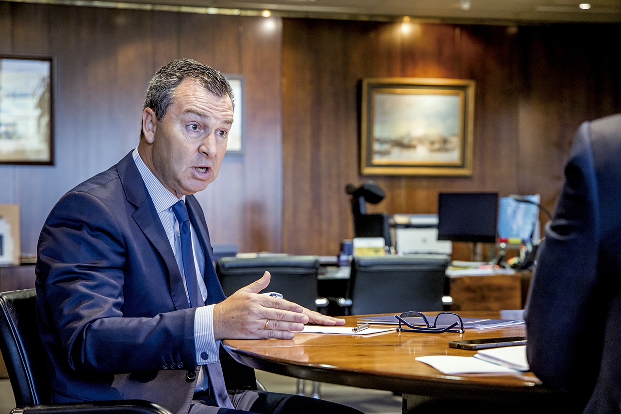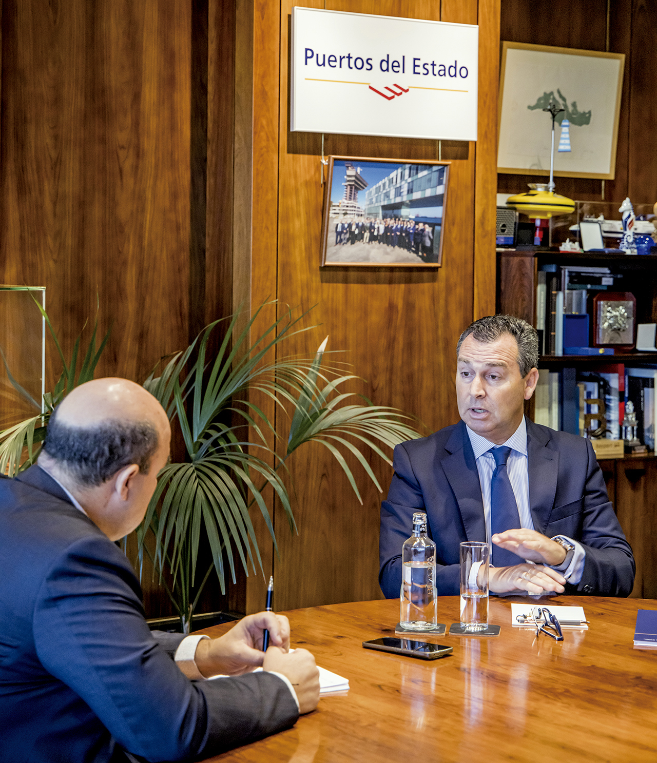 Nos recibe en este otoño recién estrenado el presidente de Puertos del Estado, Gustavo Santana, sin dejar de recordar la fecha de nuestro último encuentro, “hace un año no, algo más”, pues rememora el fuerte calor de entonces entre las paredes de madera del despacho de la Dirección General de la Marina Mercante, que mucho se asemejan al caoba que todo lo invade en la zona noble del Organismo Público Puertos del Estado, entidad que Santana preside desde el pasado mes de abril.